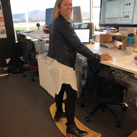 "I am totally IN LOVE with my rock-it board. It’s so great. I actually bought it as I have just done a 4 week trip across there Greenland Icecap (first day back at work!), so was wanting it to help me get used to standing all day. While the trip was very challenging, standing on my feet for 14 hours + a day was never an issue. Plus, it makes standing at my desk super easy."