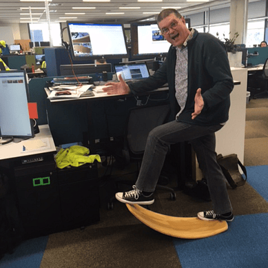 "8 months ago my employer introduced standing desks to the workplace which I had never used before. 7 months ago I started using a Rock-It at my desk and it has made all the difference. Before Rock-It I was standing, at most 3 to 4 hours per day, and tiring quickly. Now, thanks to Rock-it Office Board, I am able to stand and rock for the entire day! It has become my preferred choice. Rock-it makes the whole experience more comfortable, more relaxing and helps with my thinking processes allowing me to move, yet stand still at the same time.